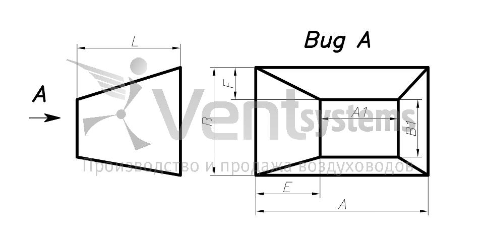 Переход прямоугольное сечение на прямоугольное сечение (с нестандартным смещением, тип 6)