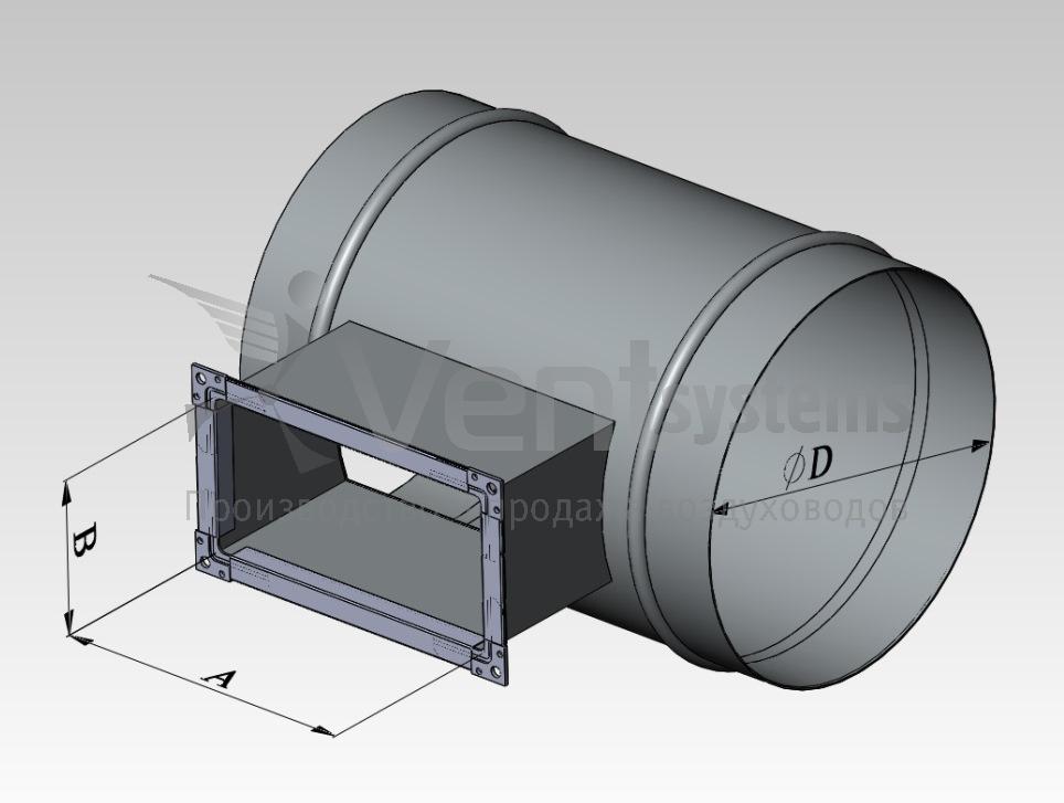 Тройник служит для создания разветвленной вентиляции - с ее помощью к основному каналу присоединяются дополнительные ответвления, а также подключается вентиляционное оборудование. Данное изделие представляет собой короткий прямой отрезок трубы и соединенную с ним прямоугольную врезку для соединения двух круглых воздуховодов и одного прямоугольного.